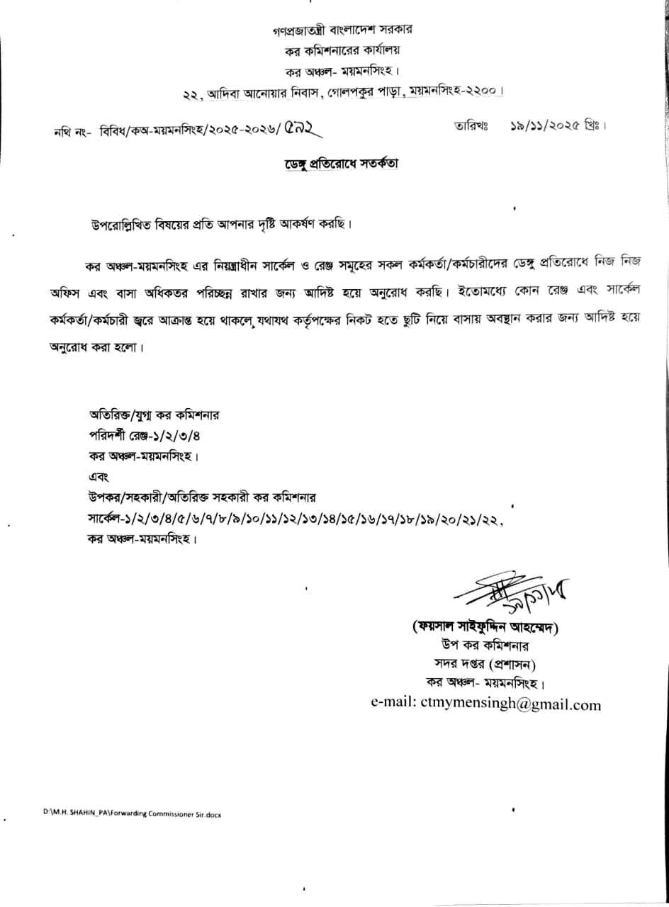 - করদাতাদের ২০২৫-২০২৬ করবর্ষের অনলাইন আয়কর রিটার্ন দাখিল সহজীকরণের লক্ষ্যে কর অঞ্চল-ময়মনসিংহের ই-রিটার্ন হেল্প ডেক্স স্থাপন বিষয়ক অফিস আদেশ। তারিখ-০৫-১০-২০২৫ খ্রি.।